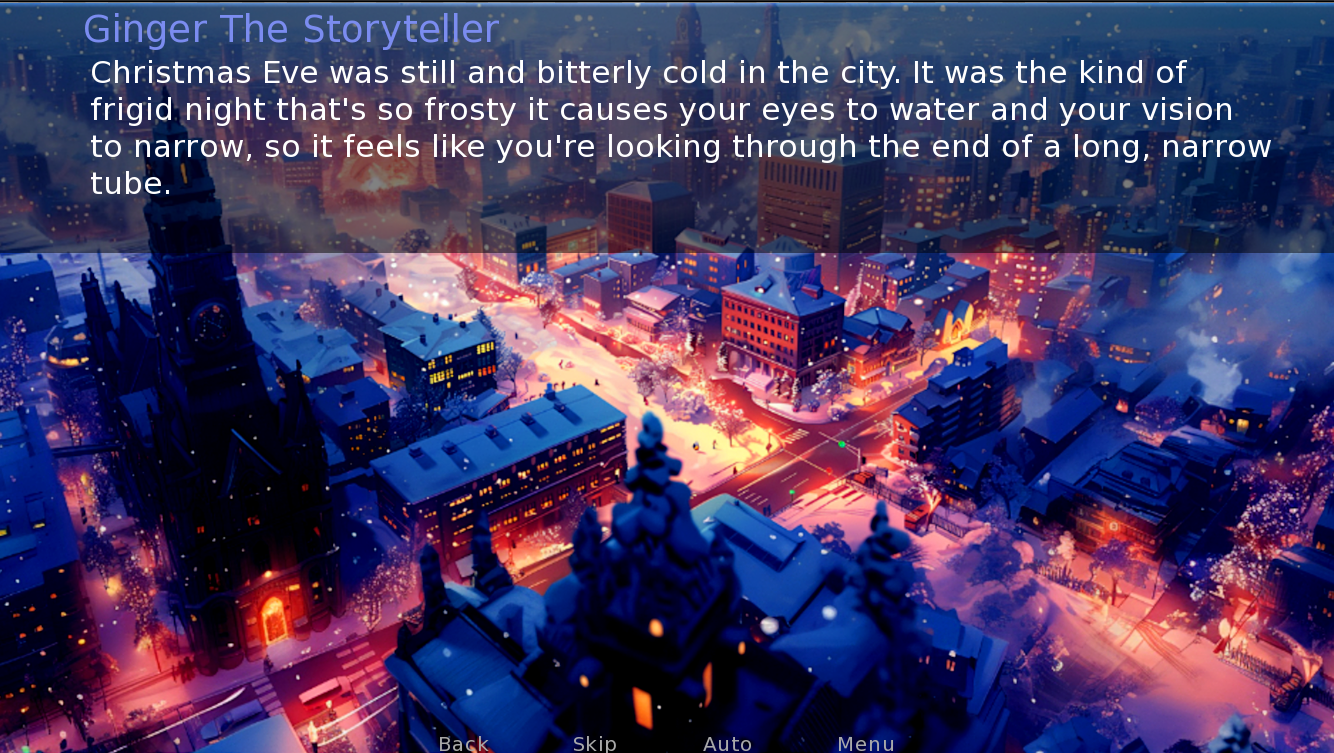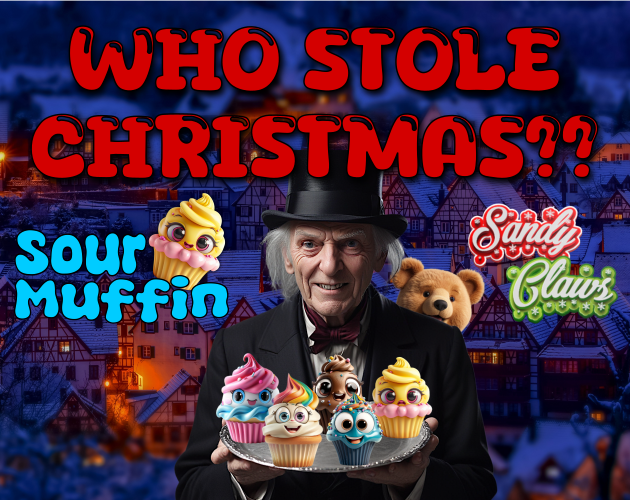 That was a very short and sweet dissertation!!! I had some time and had been wanting to do a Christmas adventure featuring the cupcake crew. I asked Bryant if I could put Sandy into my story, and that was the glue that brought together Santa and the pastries. Now, this story is the longest I've done, so far, as an interactive visual novel, I wanted to have an awesome adventure, but not be so long that children would get bored!!